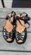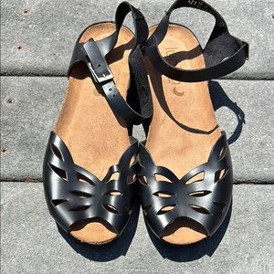 NWOT Lunita Women’s Black Leather Sandals, Peep Toe, Cut Out Design, Size 9 1/2