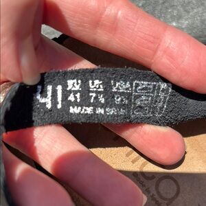 NWOT Lunita Women’s Black Leather Sandals, Peep Toe, Cut Out Design, Size 9 1/2 are gorgeous shoes. Beautiful perforated leather sandals in black. A modern look on a retro favorite. A soft cork footbed offers custom support, while the secure ankle strap and modest wedge create a winning combination of style and wearability. Sandals have a small 1 3/4” heel. Made in Spain. Brand new so excellent condition.