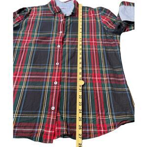 * plaid button down shirt, Tizzie shirt XL, red green yellow plaid, preppy cotton shirt, casual fall shirt, Christmas plaid, cottagecore, classic prep, holiday shirt, layering shirt, flannel look shirt, festive shirt, heritage plaid, button front blouse, retro plaid, quiet luxury casual