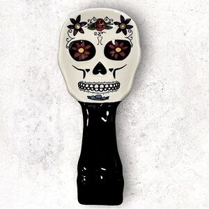 Sugar Skull Spoon Rest Ceramic Day of Dead Kitchen Gadget