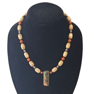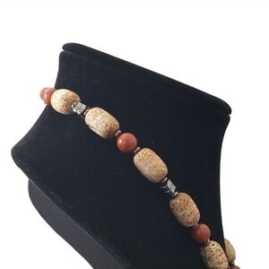 Hand Crafted Red Jasper Tibetan Sand Agate Hematite 18" Gemstone Necklace