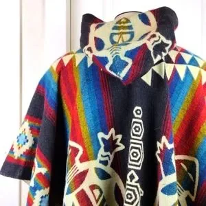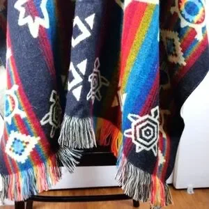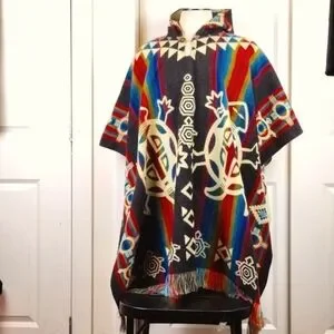 Hooded Peruvian Poncho with Aztec Inca turtle Designs. Turtle. hooded.. Aztec