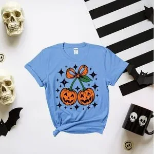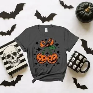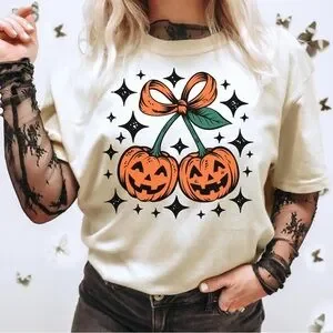 Halloween Cherries Pumpkin Shirt. Any adult size, any shirt color.
