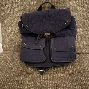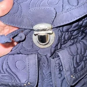 Chic quilted design with floral pattern. Spacious and stylish for everyday use. Some signs of wear visible in photos.
