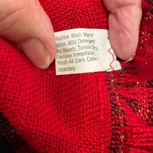 Enhance your dining experience with this elegant red and black , green and gold metallic accent plaid tablecloth. Perfect for adding a touch of sophistication to your dining table. Width 63” length 102” soft woven polyester