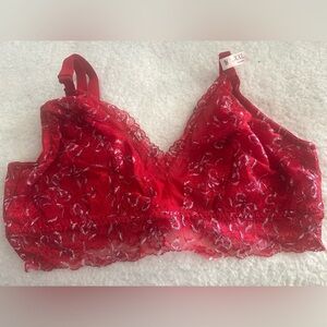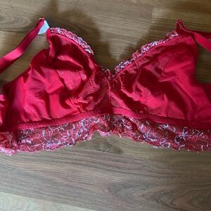 New Chic scarlet lace bralette. Offers comfort and style. Perfect for any occasion. Victoria's Secret lipstick Bows Curvy Scarlet Lace Bralette.