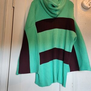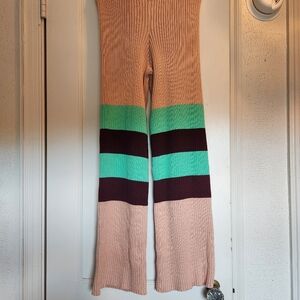Stay cozy and stylish with this striped mint and brown Free People Beach Kami sweater set. Sweater is oversized hoodie with bell sleeves pit to pit is 28. Pants are pull on with wide legs waist is 13 and inseam is 30. Perfect for any casual outing. NWOT