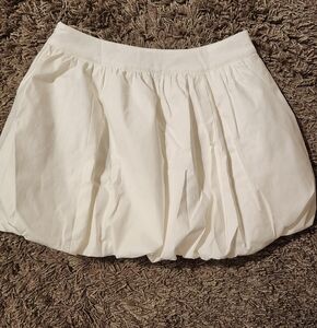 Stunning Reformation Brynn Skirt in crisp White! This gorgeous mini skirt features a fitted waistband with a full, gathered silhouette that creates the perfect feminine shape. Made from high-quality 98% organic cotton and 2% spandex for comfort and stretch. The classic white color makes it incredibly versatile - perfect for pairing with any top for both casual and dressy occasions. This piece runs large, so it's great for a relaxed fit or consider sizing down for a more fitted look. From a smoke, pet and fragrance free home.