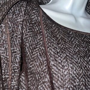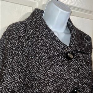 Talbots Elegant Brown and White Herringbone Tweed Cape Coat Dress Suit SZ 12 P