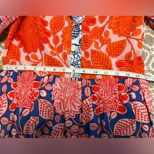 Step out in style with this vibrant floral maxi dress. Featuring a stunning mix of red and blue, this long sleeve dress is perfect for any occasion. Comes with a sash and pockets. It barely looks worn! Button closure at the top, flirty ruffles at the bottom and elastic cuffed sleeves at the wrist. Side zipper closure. Pit to pit the lay-flat measurement is 18” wide. Shoulder to bottom hem is 53”.