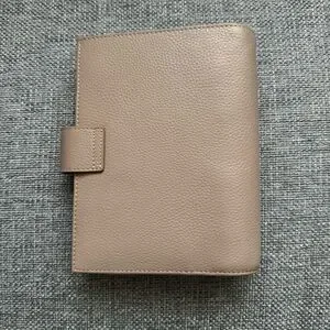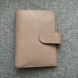 Stylish taupe leather planner with a sleek design. Perfect for everyday use and to stay organized!