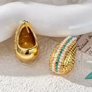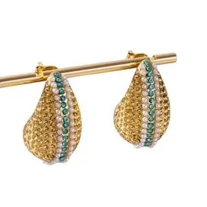Add a touch of easy style with these stunning stainless steel teardrop earrings featuring green and imitation pearl accents.