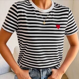 Chic striped tee with a cute red heart. Ideal for casual wear.