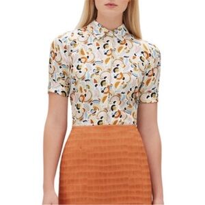 Lafayette 148 New York Geometric Print Silk Multicolor Blouse