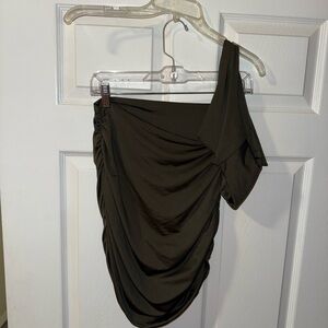 Only worn once! Stylish olive green dress with a trendy cutout design. Perfect for a night out. Women's Sexy One Shoulder Sleeveless Cutout Ruched Bodycon Mini Club Dress
