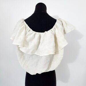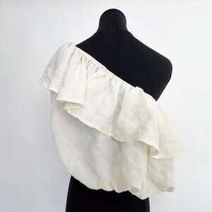 KIMCHI BLUE RUFFLE WHITE OFF THE SHOULDER SHIRT SIZE SMALL
