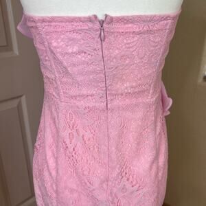 NWT Lovers + Friends Harris Pink Lace Strapless Midi Dress.
