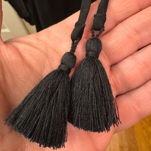 Johnny Was "Mirabel Relaxed Dress" rayon georgette shift dress in black with lush floral embroidery, V-neck with tassel ties and three-quarter elastic sleeves. Side pockets. Slip included. Size XL measures 24 inches p2p and approximately 37 inches long. New with Tags. Sundance Exclusive.