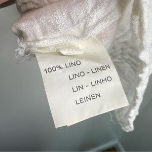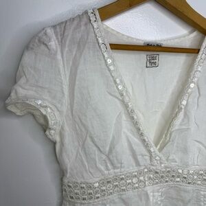 120% Lino White Cap Sleeve Top. Sequins and Eyelet Details. V Neck. Excellent Condition. No Flaws. Made in Italy. Size 40 or XS