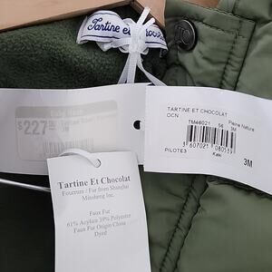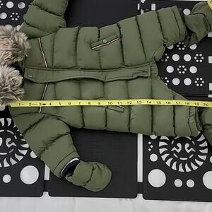 Tartine et Chocolat Baby Khaki Green Hooded Bunting Puffy Snowsuit Faux Fur 3M