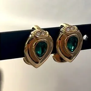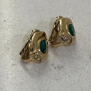 Christian Dior vintage Elegant Gold and Green clip on earrings. Made in Germany