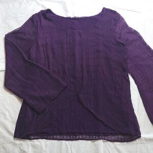 AB Studio Purple Layered Sheer Embroidered Bell Sleeves Blouse XL