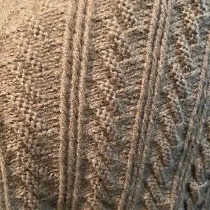 Stay warm and stylish with this cozy gray cable knit triangle shawl.