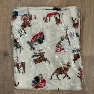 Cozy pajama pants featuring a festive reindeer and holiday design. Perfect for the holiday season.