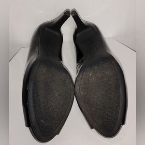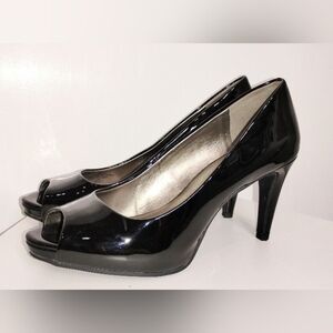 BANDOLINO BLACK PATENT PEEP TOE PUMPS