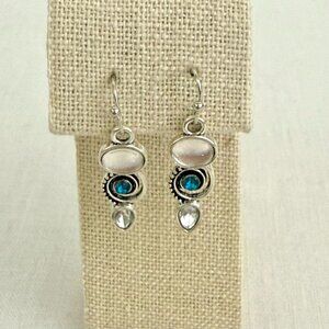 Opal Earrings Blue White Silver Plated Boho Mermaidcore Ocean Inspired Jewelry