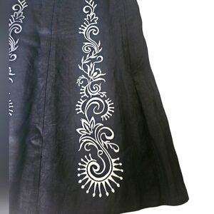 Ann Taylor LOFT Black w/ White Floral Embroidery Panel A-Line Linen Skirt, Sz 8