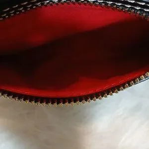 Dooney & Bourke Zebra Stripe Hobo/ Shoulder Bag. Eye-catching zebra stripe design. Perfect for adding flair to any outfit. Zip top closure. Interior: Red fabric lining. 1 zip pocket and 2 slip pockets. Keychain hook. Exterior: Features a convenient front zip pocket. Shoulder strap. DB logo. Gold-Tone hardware. In excellent condition. Pre-owned
