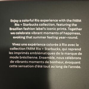 colorful Starbucks collaboration with Farm Rio large navy blue and ivory mug. NWT