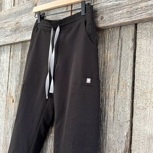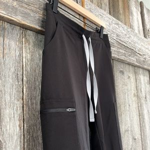 Stylish black scrub set. Includes top and pants. Comfortable and professional.