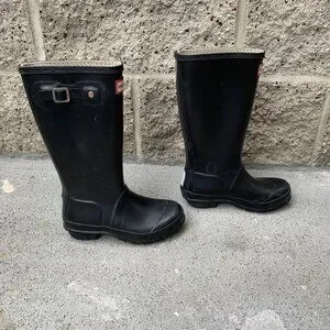 HUNTER Original Rain Boots US 2 EU 32 Big Kids Black High Gum Boot Rubber