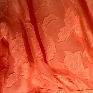 The Alex Marie Coral Long Sleeve Tie Waist V Neck Tiered Dress in Women's size 8 is a stunning formal party dress perfect for various occasions such as weddings, events, and parties. The dress features a beautiful floral pattern in coral, a V-neckline, and balloon sleeves with a chiffon fabric for a graceful and elegant look. The dress is accented with ruffles, pleats, and a waist tie, making it a stylish and eye-catching piece for the summer, fall, and spring seasons. Made of polyester blend with elastodiene material, this dress is designed by Alex Marie and is sure to make a statement at any special event.