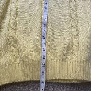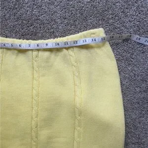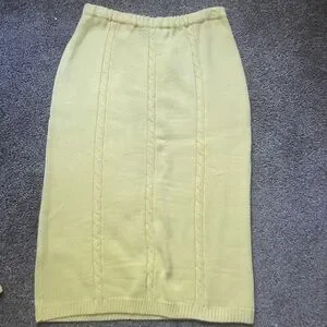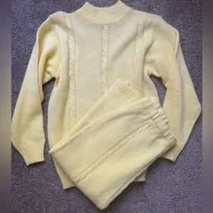 Stay warm and stylish with this elegant vintage yellow cable knit sweater set. Perfect for any occasion.