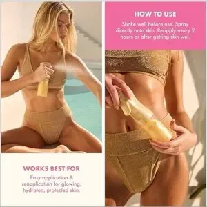 Kopari Sunscreen Spray Mist Gold Shimmer Beach Sun Pool Swimming Vacation Cruise Ocean Summer Trip