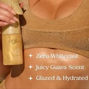 Kopari Golden Sunglaze Sheer body Mist Sunscreen SPF 50. 5oz. Sealed with trigger lock. This light as air mist feels weightless, never sticky or tacky and effortlessly distributes onto skin, giving full and even UVA/UVB coverage. Silky smooth, protected skin has never been such a beeeze!