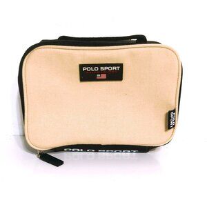 Polo Sport Ralph Lauren Beige Canvas Fragrance Toiletry Bag Travel Case. Condition is preowned. Approximately 9" x 6" x 3" (FC04)