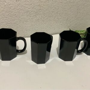 Set 4 ARCOROC Glass BLACK OCTIME Octagon 10oz Coffee MUG Tea CUP France G1