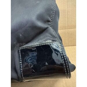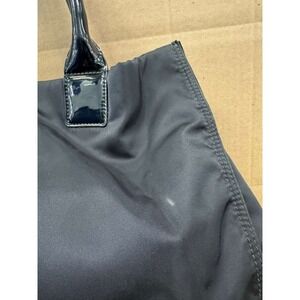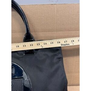 Tory Burch Ella Oversized Logo Patch Recycled Nylon Patent Tote Bag Black Large