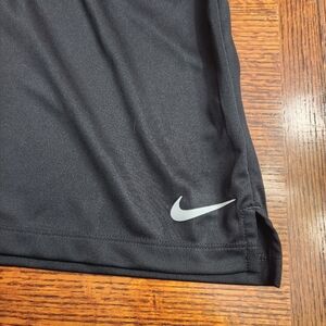 solid black with dri fit and nike logo on front bottom hem