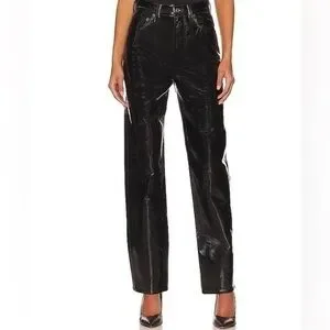 AGOLDE's pants are made from smooth recycled patent leather-blend that has a lower carbon footprint than traditional fabrics. Inspired by vintage jeans, this slick black pair sits at your waist and has five pockets. Roll up the cuffs to show off chunky boots.