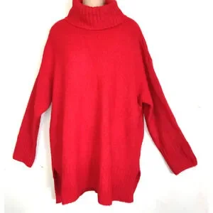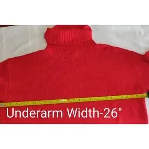 Previously Owned Red Turtleneck Sweater by Style & Co. Long sleeves, ribbed bottom and wrists. 7" bottom side slits. Soft and stretchy. Very cozy.