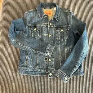 Classic Levi's jean jacket. Features button front and chest pockets. Timeless style.