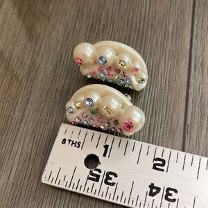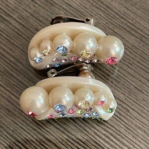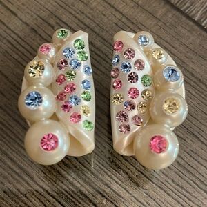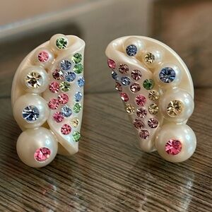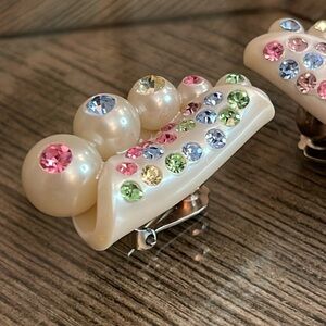 Vintage Unique Shaped Thermoset & Pastel Rhinestone Clip Earrings