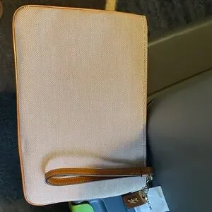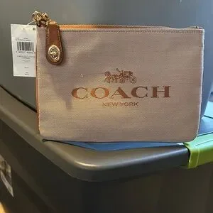 Elegant Coach wristlet with a turn-lock closure. Includes a convenient wrist strap.