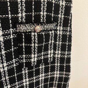 SHEIN Black & White Tweed Plaid Dress Knee Length with Silver Buttons - Size 6