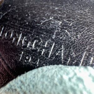 Pre owned a few spot could be touched up with black pen but very small also some dirt on bottom of inside see photos